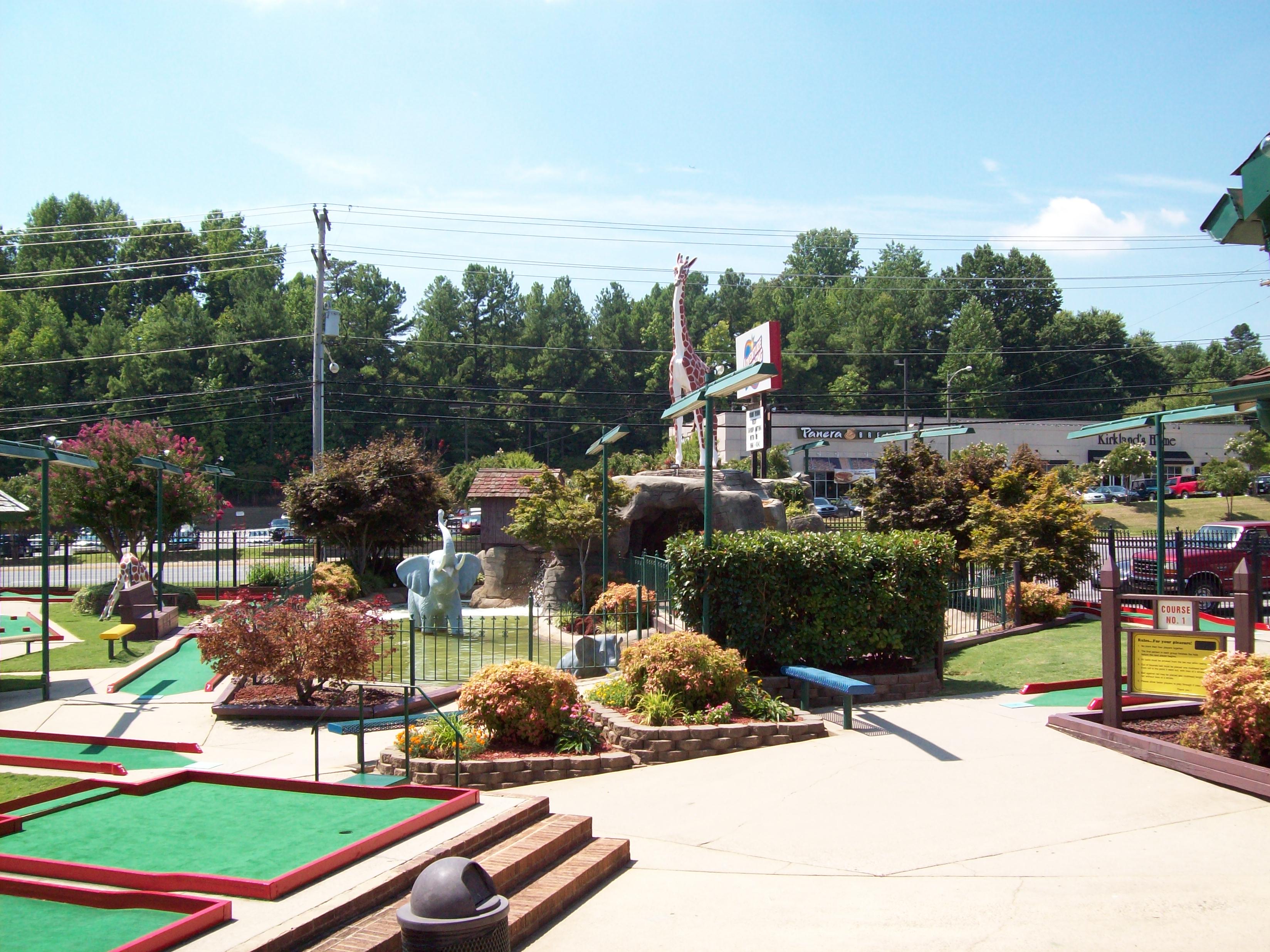 Three uniquely themed 18-hole miniature golf courses designed exclusively for Adventure Landing with lush landscaping and foliage.